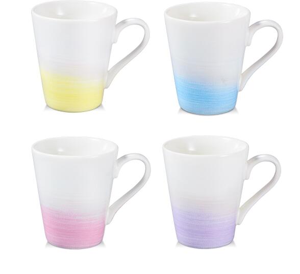 Tescoma myCOFFEE porcelán teáscsésze, 4 db, PastelsA myCOFFEE teásbögrék és kávéscsészék vékonyfalú „New Bone porcelánból készültek, amely kivételes rendkívüli fehérségével és ellenállóságával. A négy bögréből álló készlet eredeti módon ötvözi a porcelán bögrék hagyományos formáját trendi dekorációval. Mikrohullámú sütőbe és mosogatógépbe is a