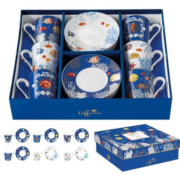 8öö1544137711, 8001544137711 , R2S. 126AQRM Porcelán eszpresszócsésze+alj 6 személyes 100ml dobozban, Aquarium, Coffee Mania