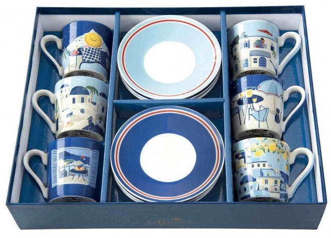 8öö1544125923, 8001544125923 , R2S. 126SEAD Porcelán eszpresszócsésze+alj 6 személyes, 100ml, dobozban, Sea Dreams, Coffee Mania