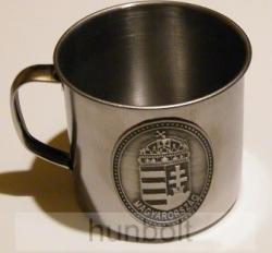 Fém bögre, fém füles pohár 1,5 dl különböző ón címkével - űrtartalma 1 dl - magassága: 5,5 cm - átmérője: 6,5 cm