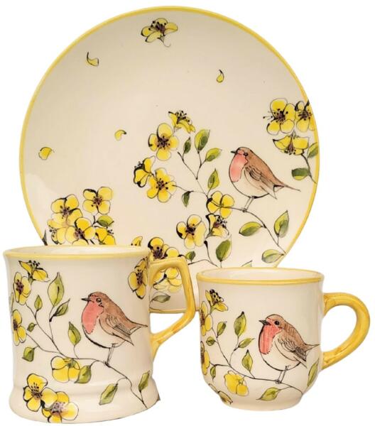 Termék adatai Anyaga: kerámia Szín:Máz alatti festék, 1030C-on égetett mázzal bevonva. Bevonat: Károsanyag mentes, fényes máz. Készült: Égetéssel 1030 C-on Termék adatai Anyaga: kerámia Szín:Máz alatti festék, 1030C-on égetett mázzal bevonva. 2dl és 4 dl bögre tányér átmérő:19,5 cm Bevonat: Károsanyag mentes, fényes máz. Készült: Égetéssel 1030 C-on Minden egyes