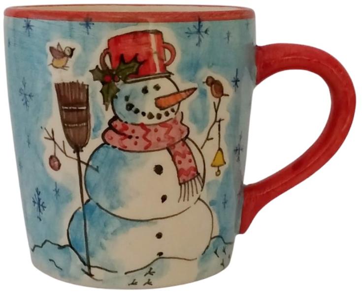 Kézzel készített Karácsonyi hóemberes bögre . Termék adatai: Anyaga: Kerámia Szín: Máz alatti festék Bevonat: Károsanyag mentes, fényes máz. A Karácsonyi hóemberesbögre 1030 C-on készül, égetéses módszerrel. Minden egyes darab egyedileg, kézzel készült és kézzel festett, emiatt előfordulhatnak apróbb hibák, amelyek minden darabot még egyedibbé és különlegesebbé