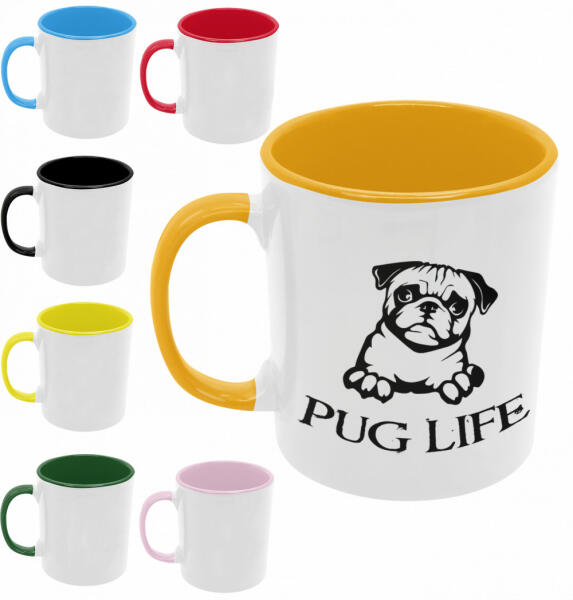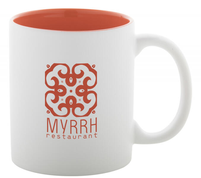 Fehér kerámia bögre színes belsővel, 350 ml. A gravírozott logó a bögre belsejével megegyező színű. Díszdobozban szállítjuk.