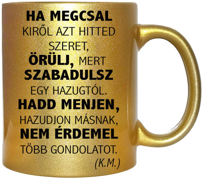 3 dl kerámia bögre. NEM KOPIK! Ez a minta csak nálunk kapható! A fehér bögre mosogatógépben mosható, az arany és ezüstnél a kézi mosogatás javasolt. A RAJTA LÉVŐ FELIRATOT VÁLTOZTATHATOD, DE AKÁR A MÁSIK OLDALÁRA IS KÉRHETSZ TOVÁBBI FELIRATOZÁST (Megjegyzésbe írd be ha egyedi feliratot kérsz). Mivel a bögre másik oldala üres, akár 2-3 mondatot is feliratozhatsz. A bö