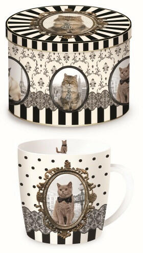 Válaszd a minőséget! Ajándéknak is kitűnő. Easy Life-Nuova Porcelánbögre fémdobozban 250ml, Barocco Cats B