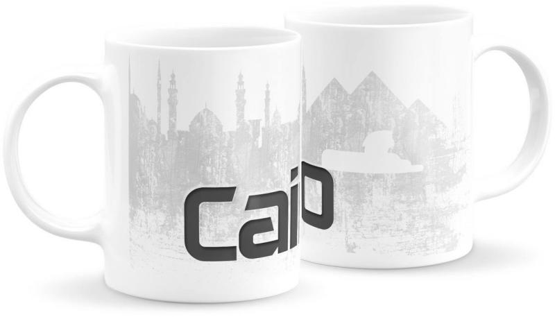 Kairó sziluettjével díszített egyedi bögre. A bögrén a város legfőbb nevezetességei láthatóak teljes panorámában, forgasd csak körbe, látod?