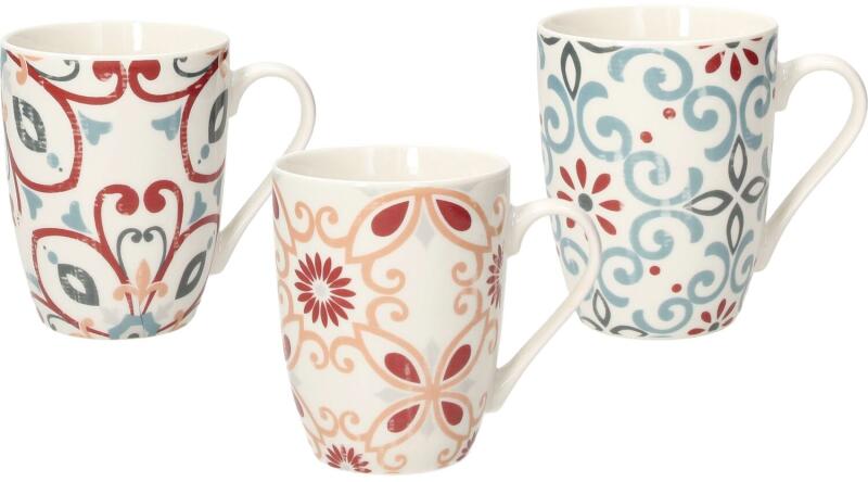 Porcelánbögre különböző motívumokkal. Ideális kávéhoz, teához vagy más kedvenc italhoz. Űrtartalom: 350 ml.