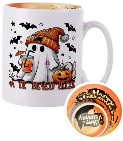 Személyre szabható Halloweeni bögre, cuki szellemes 300ml fehér, mintás belsővel. Kiváló minőségű Halloweeni dekorációs kiegészítő, de szuper ajándék is lehet Ez a személyre szabható halloweeni kerámia bögre ami szuper kiegészítője lesz a konyhának. Prémium grafika és anyag. Mérete: 330 ml prémium kivitel, professzionális gépekkel készítjük! Nem összetévesztend