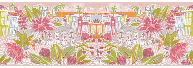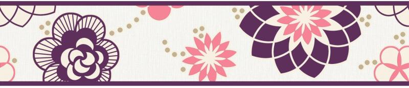 Modern, virágos bordűr vidám színekben. Színtartó, könnyen tisztítható anyagból készült. Mérete: 5 m x 13 cm.