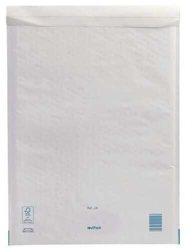 Jovimail Plus megerősített fehér kraft boríték, 139 gr/m2, buborékfóliával párnázott. 80 százalékban újrahasznosított anyagokból (újrahasznosított papírból) készült. Belseje buborékokkal van bélelve JoviCap barrier technológiával. Az öntapadó szárnynak köszönhetően praktikus. Franciaországban készült kiváló minőségű és erősebb anyagból, így ideális a tö
