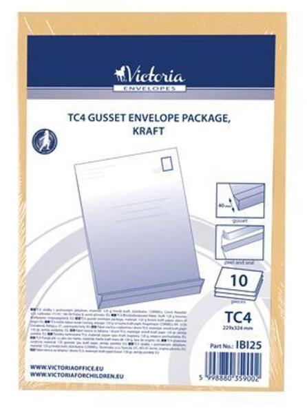 -bélésnyomatlan -anyaga: 120 g-os barna kraft papír -méret: 229x324 mm -csomagolási egység: 10 db -talpméret : 40 mm -celofán csomagolás