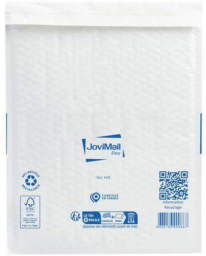 Jovimail fehér kraft boríték buborékfóliával és könnyű súlyával. Ideális törékeny tárgyak küldésére. Sima fólia a dokumentumok és egyéb tárgyak egyszerű behelyezéséhez. Sima papír hátlap a borítékok egyszerű felcímkézéséhez. Boríték öntapadó szalaggal a lezáráshoz.