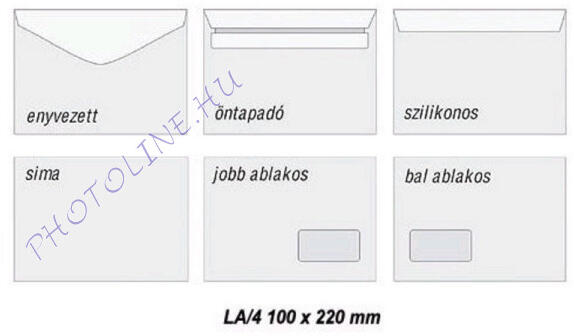 bélésnyomott anyaga: 90 gos fehér ofszet méret: 324×229 mm csomagolási egység: 250 db ablak mérete: 55x90 mm abakhelyzet : jobbról 20 mm felülrõl: 57 mm