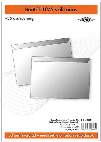 szilikonos borítékcsomag a védőszalag eltávolítását követően a fül lesimításával zárható le 80 g/m2 grammsúlyú papírból kék bélés szín: fehér méret: LC/5 162x229 mm