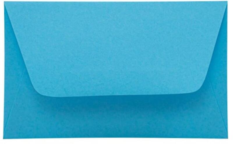 Névjegykártya méretű, színes boríték, enyvezett záródással.