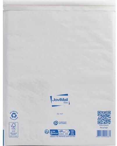 Jovimail fehér kraft boríték buborékfóliával és könnyű súlyával. Ideális törékeny tárgyak küldésére. Sima fólia a dokumentumok és egyéb tárgyak egyszerű behelyezéséhez. Sima papír hátlap a borítékok egyszerű felcímkézéséhez. Boríték öntapadó szalaggal a lezáráshoz.