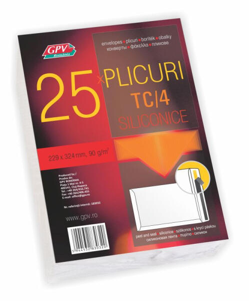 Boríték GPV TC/4 szilikonos bélésnyomott 229x324mm 250 darabos A/4-es méretű küldeményekhez fehér, bélésnyomott, szilikonos záródással.