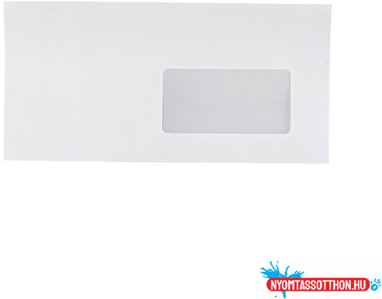 LA4 BORÍTÉK (DL BORÍTÉK), SZÍNE: FEHÉR, PAPÍR: 80g ofszet, MÉRETE: 110 x 220 mm, ZÁRÓDÁS: SZILIKONOS, BÉLÉSNYOMOTT, ABLAK: BAL SZABVÁNY ABLAKOS (mérete: 45x90mm, elhelyezkedése: alulról: 15mm, balról: 20mm) RENDELÉSI MENNYISÉG: 1 DARAB, KISZERELÉS: BONTOTT DOBOZ
