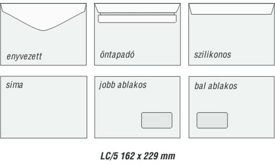 Magas minőségű, nagy fehérségű ofszetpapírból készült standard borítékok, amelyek belül szürke tónusnyomással és bélésnyomatlan kivitelben is kaphatók.