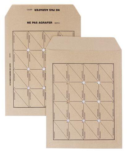 Kraft postai boríték 90 g Ideális dokumentumok belső küldésére. Előre nyomtatott területek írási jóváhagyások és jegyzetek számára. Lyukasztott borítékok.
