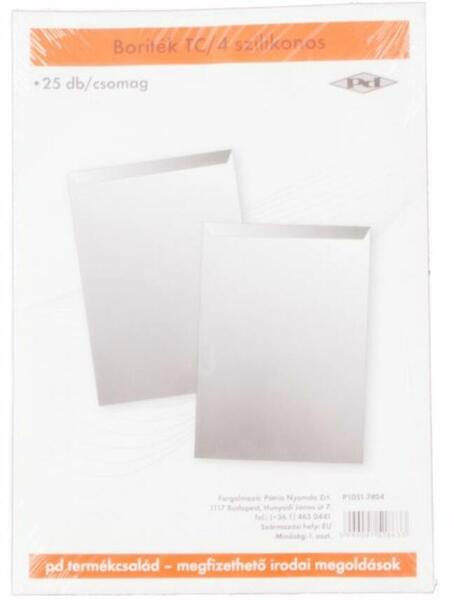 Öntapadós boríték 25 db-os kiszerelésben 229X324mm P1111-1250 Hivatalos magyarországi forgalmazótól. Leírás: Öntapadós boríték 25 db-os kiszerelésben Jellemzők: A védőszalag eltávolítását követően a fül lesimításával zárható le Mérete: 229 X 324 mm Szín: fehér Kiszerelés: 25 db
