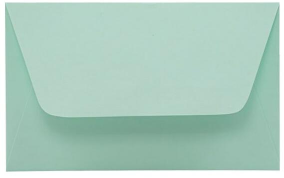 Névjegykártya méretű, színes boríték, enyvezett záródással.