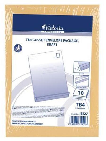 -bélésnyomatlan -anyaga: 120 g-os barna kraft papír -méret: 250x353 mm -csomagolási egység: 10 db -talpméret : 40 mm -celofán csomagolás