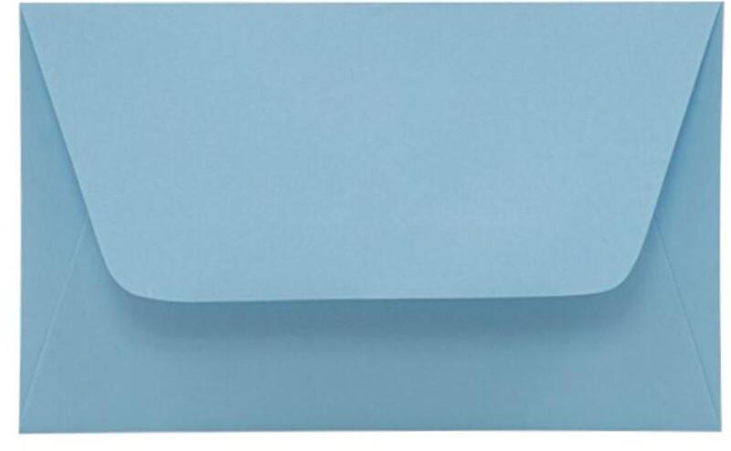Névjegykártya méretű, színes boríték, enyvezett záródással.