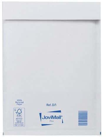 Jovimail Plus megerősített fehér kraft borítékok, 139 gr/m2, buborékfóliával bélelve. 80%-ban újrahasznosított anyagokból (újrahasznosított papírból) készült. Belseje buborékokkal van bélelve JoviCap barrier technológiával. Az öntapadó szárnynak köszönhetően praktikus. Kiváló minőségű és erősebb anyag, amely ideális a törékeny tárgyakhoz.