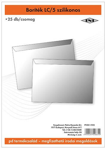 Boríték pd LC/5 szilikonos 162x229 mm 25 db/csomag szilikonos borítékcsomag a védőszalag eltávolítását követően a fül lesimításával zárható le 80 g/m2 grammsúlyú papírból kék bélés szín: fehér 25 db/csomag méret: LC/5 162x229 mm