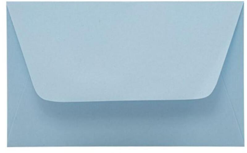 Névjegykártya méretű, színes boríték, enyvezett záródással.