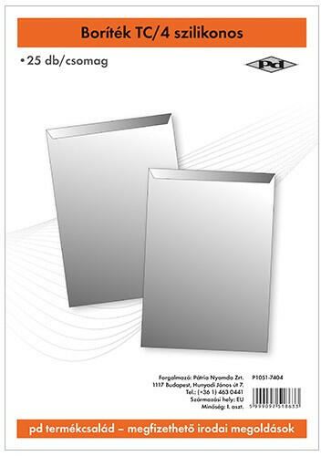 Boríték pd TC/4 szilikonos 229x324 mm 25 db/csomag szilikonos borítékcsomag a védőszalag eltávolítását követően a fül lesimításával zárható le 90 g/m2 grammsúlyú papírból szín: fehér 25 db/csomag méret: TC/4, 229x324 mm
