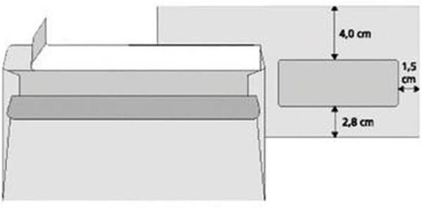 anyaga: fehér ofszet méret: 114×229 mm gépitöltésra alkalmas a boríték oldalsó ragasztása kívülre hajló csomagolási egység: 1000 db ablak mérete: 35x90 mm ablak elhelyezkedése: jobbról 28 mm alulról 20 mm
