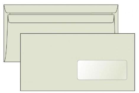 Borítékok DL + ablak 110x220 mm 100% újrahasznosított papírból 80 g LETTURA öntapadós. A csomag 1000 db-ot tartalmaz. Ablak mérete 42x104mm (jobbról 15mm, alulról 28mm).