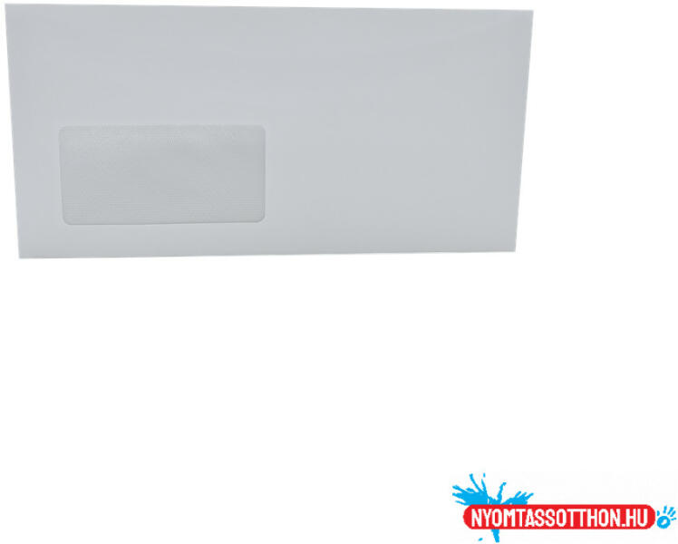 Magas minőségű, nagy fehérségű, felülnyomható ofszetpapírból készülő, standard borítékok. Belül szürke tónusnyomással és anélkül is kaphatóak. Mérete: 110 x 220 mm. Ablak mérete: 45 x 90 mm C=100 db. .