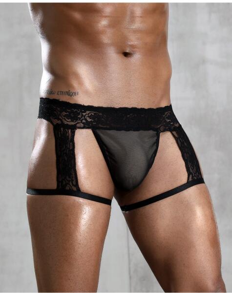 Szexi férfi boxeralsó a Boldero kollekcióból. Az intrikus fekete anyag nagyszerűen mutat a testen. Az oldalt és a fenék felett található átlátszó hálós rész csábító és figyelemfelkeltő, a kényelmes szabás pedig remek választássá teszi ezeket a boxeralsókat mind a hálószobában, mind a mindennapi viselethez.