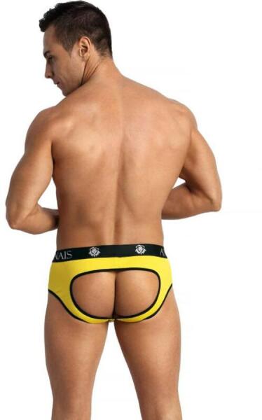 TOKIO Puha modál, sárga színben kíváló minőségű anyagból készült nyitott fenékkel ellátott bikini rövidnadrággal rendelkezik játékosan felfedi a férfi feneket, merész szabásával csábító Anyagösszetétel: 80% polyester 20% lycra Az Anais Apparel a világ legszexisebb fehérneműje 2003 óta. SIZE CHART Size S M L XL 2XL 3XLWaist in cm 75-80 81-88 89-97 98-106 107-116 117