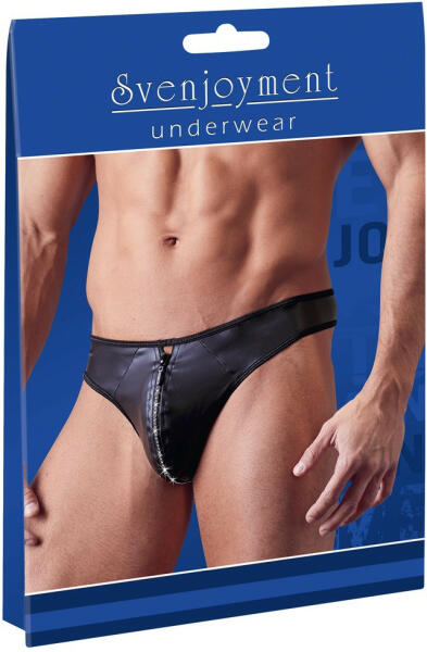 Svenjoyment - fényes férfi tanga strasszos cipzárral (fekete) [L]