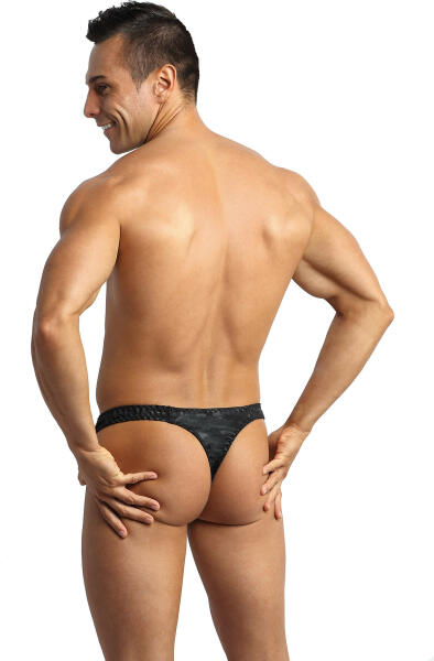 ELECTRO Puha mikroszálas finom katonai mintával Kiváló minőségű anyagból készült nyitott fenékkel ellátott bikini rövidnadrágot tartalmaz játékosan felfedi a férfi feneket, merész szabásával csábító Összeté tel 85% poliamid 15% elasztán Az Anais Apparel a világ legszexisebb fehérneműje 2003 óta. SIZE CHART Size S M L XL 2XL 3XLWaist in cm 75-80 81-88 89-97 98-106 107