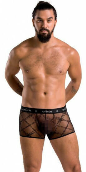 Obsessive Men M103 férfi boxer Kicsit vastagabb, nagyon rugalmas teljesen fekete anyagból készült férfi alsó. A combok külső oldalán áttört mintázattal. Méret: S-L Anyaga: 90% nylon, 10% elasztán Prémium minőség, tetszetős csomagolás