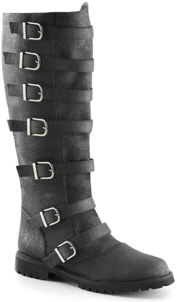 1 1/2"-es (3,8 cm) lapos sarkú, többcsatos férfi felhúzható pántos térdcipő, kihúzható nyéllel