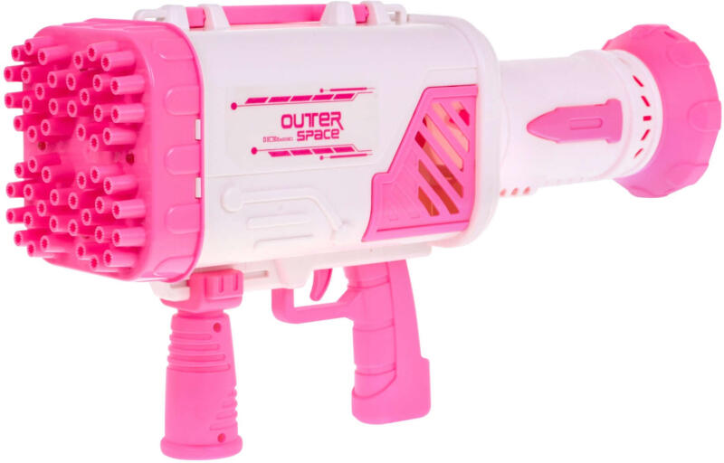Szappanbuborék fújó géppuska rózsaszín színben 3 évesnél idősebb gyermekek számára készült a játék. A gépfejen 52 lyuk található, amin keresztül kijönnek a buborékok, és a világító funkciónak köszönhetően a buborékok mesésen néznek ki. A buborékos gép kis hordozható ventilátorként is használható. A játék 2200 mAh-s 3,7 V-os akkumulátorral működik (tarto