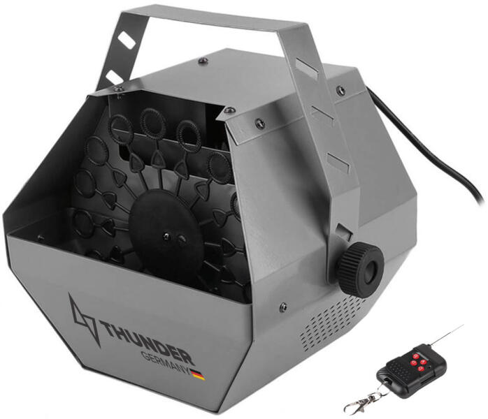 Műszaki adatok: - Nagy teljesítményű buborékgép - Megbízható, erős ventilátorokkal - Teljesítmény: 60W - Fújási távolság: 4 méter - Vezeték nélküli távirányító - Masszív összeszerelés - Fém ház - Könnyedén szállítható - Ideális választás kerti partira, házibuliba - Méret: 25 x 25 x 23 cm - Tömeg: 2 kg Termékleírás: A Thunder BM-600 egy látványos buboré