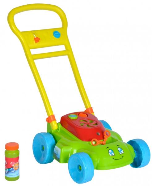 A Simba Toys Bubble Fun - Buborékfújós játék fűnyíró elemmel működtetett szappanbuborék-fújó funkcióval rendelkezik. A fűnyíró elejét a csomagolásban található folyadékkal feltöltve, majd a gombbal bekacsolva indulhat is a játék . A gyűrűk egymás után bemerülnek a folyadékkal feltöltött tartályba, a ventillátor pedig fújni kezdi a levegőt, és már érkeznek is