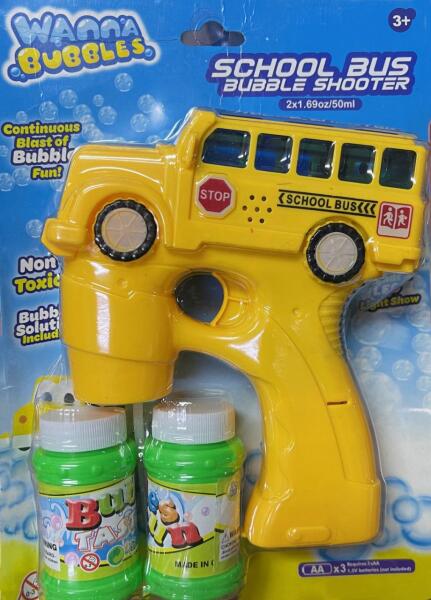Elemes Buborékfújó Iskolabusz pisztoly 2db flakon A nyár slágere A buborékfújó minden korosztályt lenyűgöz Egyszerű a használata, 3db AA elem behelyezése után csatlakoztassa a tartályt a pisztolyhoz és már ezernyi buborékot fújhat azonnal - 1db Buborékfújó pisztoly- 2db flakon- Működik 3db AA ceruzaelemmel (nem tartozék)- Anyaga műanyag- 3 éves kortól- Szine Sárga