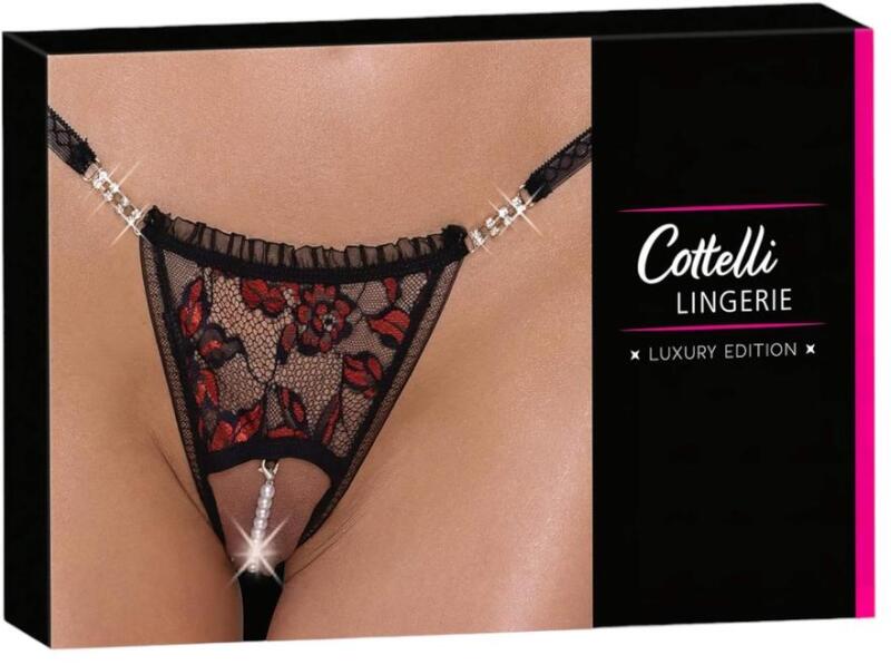 Cottelli - Gyöngyös csipketanga (fekete) [L]