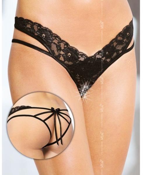Obsessive 810-THO-1 - virágos, fodros csipketanga (fekete) [-]