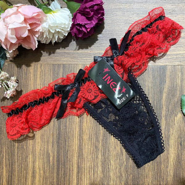 Obsessive Luiza tanga (piros) Klasszikus vonalvezetésű, prémium minőségű tanga, elöl egyszerű, enyhén áttetsző anyagból, hátul pántos kialakítással, virágmotívumos csipkebetéttel. Méret: S-M Rugalmas pánt Anyaga: 94% polyamid, 6% elasztán A modell pontos méreteihez tekintse meg a további képeket, ahol az egyik pontosan mutatja a méreteket Prémium minőség