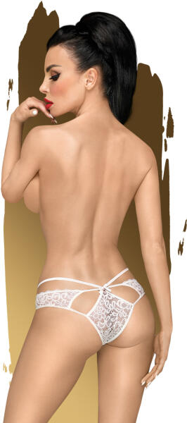 Ezek a finom, ennivaló csipkéből készült, szűk szabású bugyik a fenekét teszik látványossá: A kiváló minőségű anyagok mellett a fehérnemű egyedi kialakításával is pontot szerez. A gyönyörű csipkeminta és a háton található szexi kivágások különösen érzéki megjelenést kölcsönöznek. A játékos masni applikáció és a keresztezett pántos részletek teszik tel