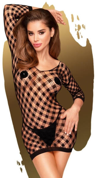 Aprócska, elöl áttetsző necc anyagból készült, hátul csipkés díszítésű alsó. Az első és a hátsó részt alul az intim résznél két rugalmas, csipkés pánt köti össze. Méret: XS-S Anyaga: 94% polyamid, 6% elasztán A méretválasztáshoz kérjük tekintse meg a további képeket, ahol az egyik pontosan mutatja a méreteket Prémium minőség, tetszetős csomagolás
